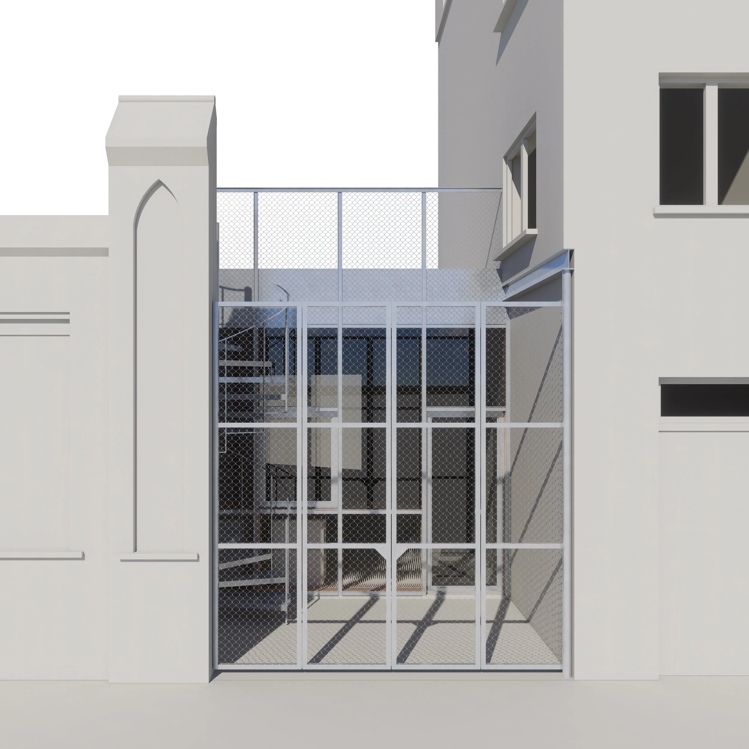 Uit het volume worden twee nieuwe buitenruimtes gespaard.De voorgevel trekt zich enkele meters terug en wordt maximaal beglaasd. Hierdoor ontstaat een voortuin in directe relatie met de straat die tegelijk omsloten en intiem blijft. Bijkomend faciliteert deze voortuin een stalen spiltrap naar een nieuw dakterras.